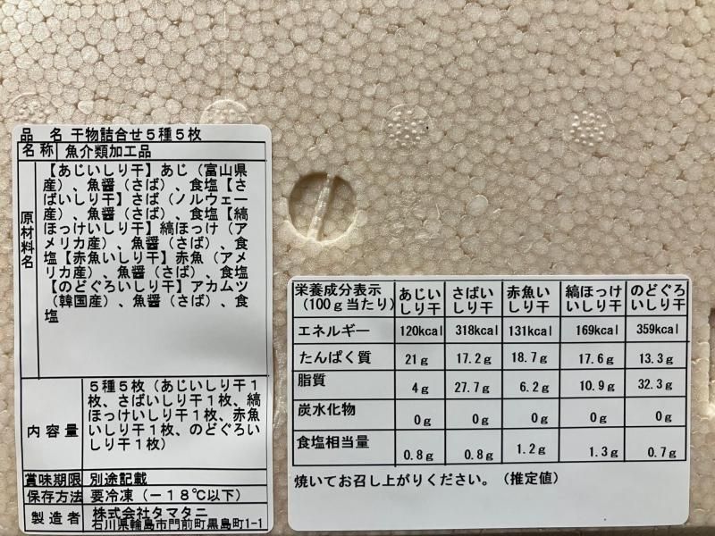 内容 ・のどぐろ・赤魚・あじ・さば・しまほっけ(5種各1枚)
