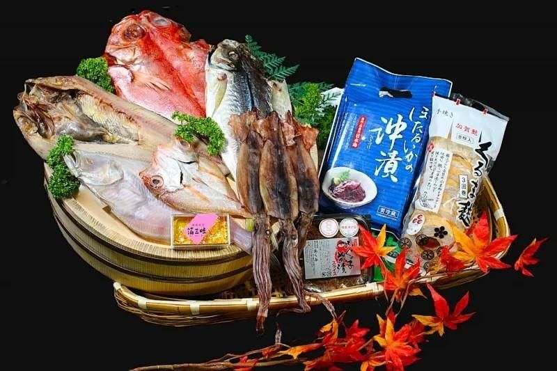 当店売れ筋の干物セットと食用金箔など「金沢らしさ」を詰め込んだセットです。